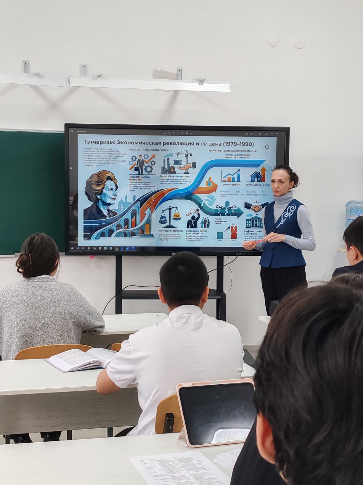 "Тарих және география " апталық аясында  9 «В» сыныбына Петровская А.В   тарих пәнінен «Швед  социализмі» тақырыбындағы ашық сабақ жоғары әдістемелік деңгейде ұйымдастырылды. Сабақтың мақсаты мен міндеттері нақты қойылып, кезең-кезеңімен жүзеге асырылды. Мұғалім Швеция елінің әлеуметтік-экономикалық даму моделін талдау арқылы оқушылардың аналитикалық ойлау, салыстыру және қорытынды жасау дағдыларын дамытуға жағдай жасады.